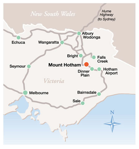 The Great Alpine Road runs from Wangaratta in the north of Victoria, to Bairnsdale in the south - and Hotham lies in the centre.